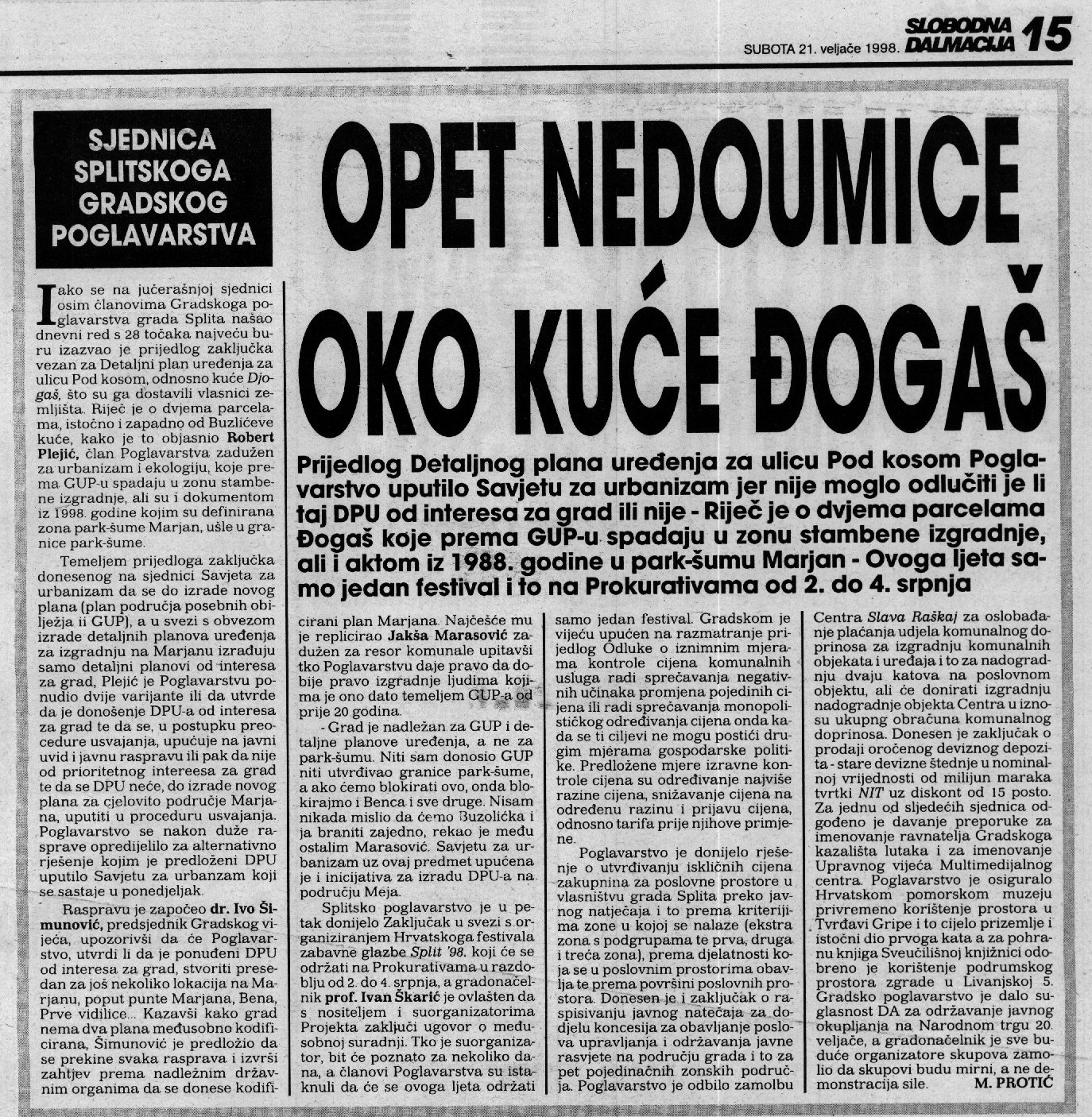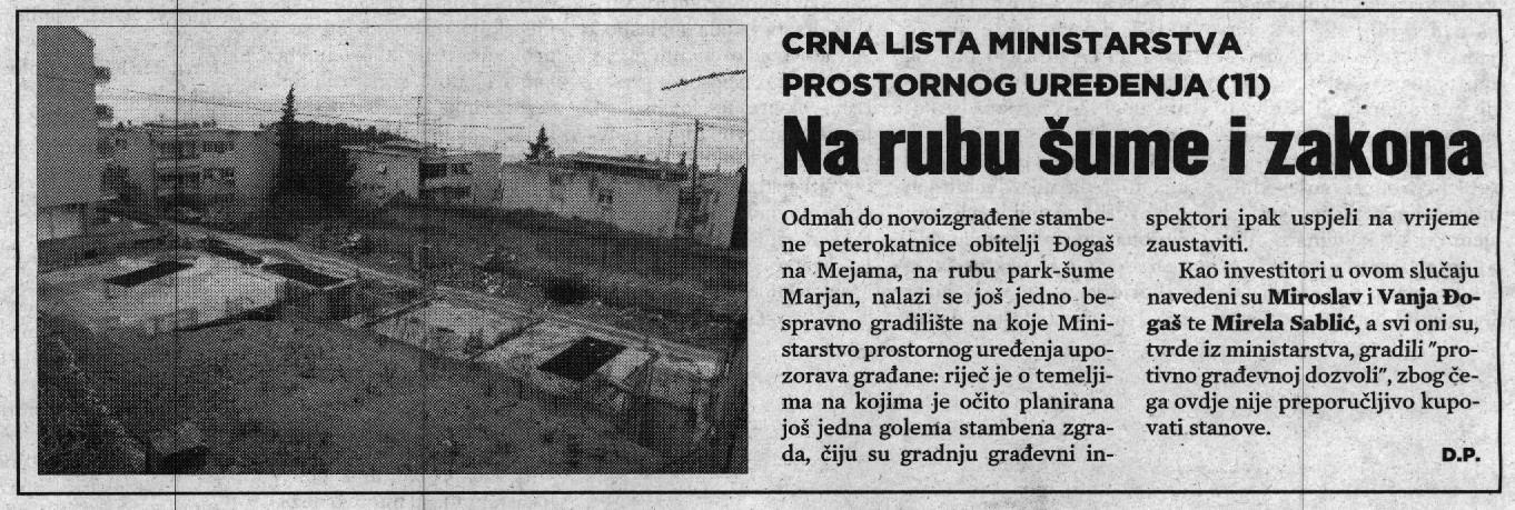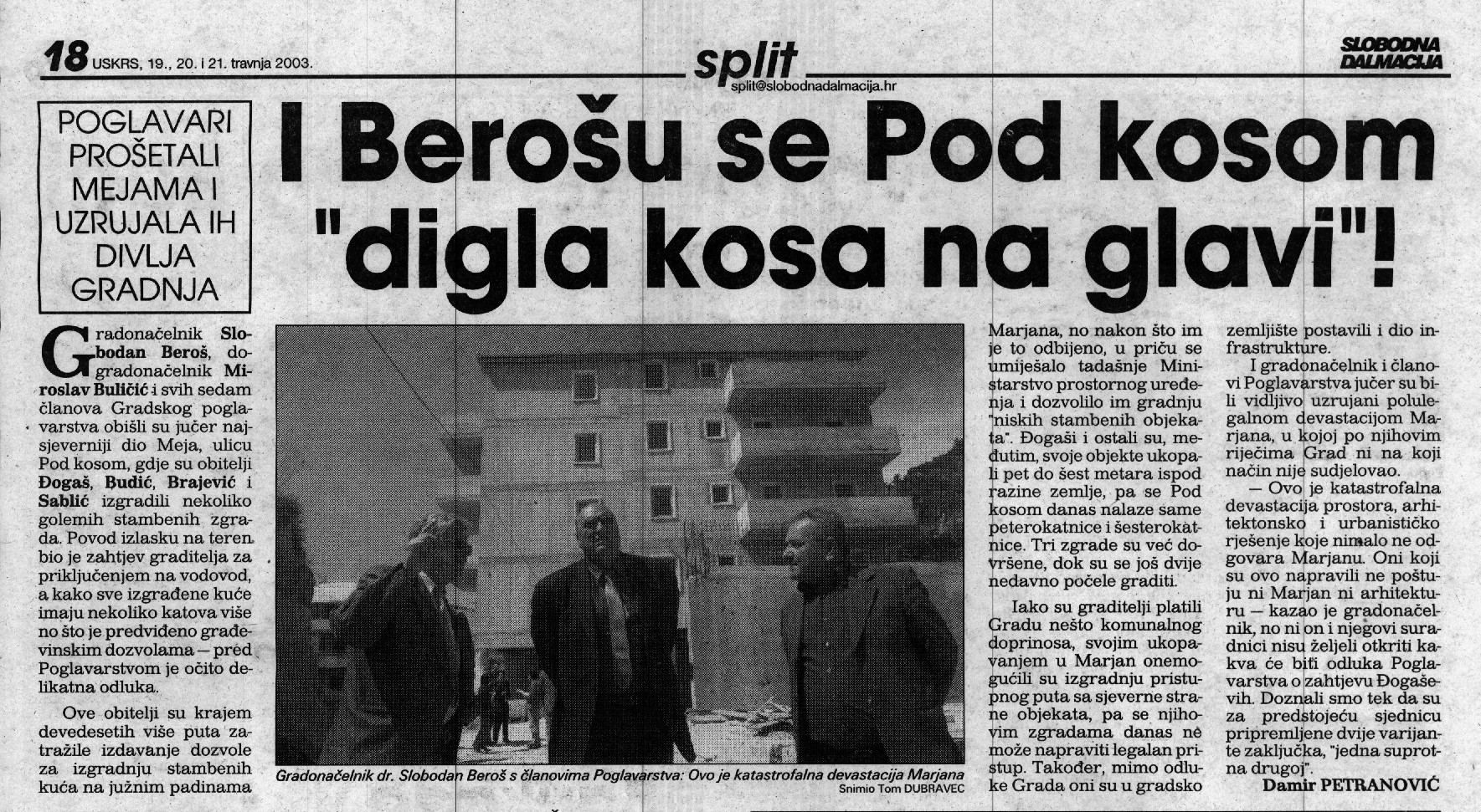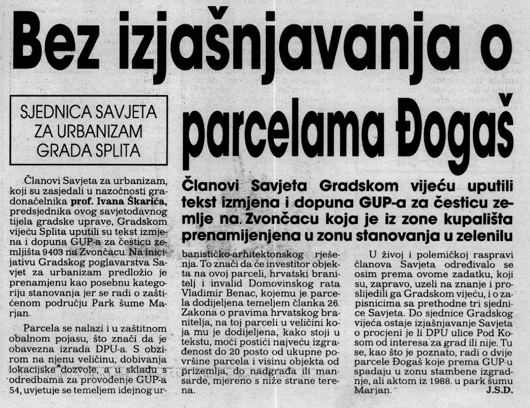 Slučaj Hotel Cvita (Đogaš) – Pod Kosom Hotel Cvita Hotel Cvita Katastar Zemljišnik Medijski tekstovi 26.03.2023. Imućna splitska obitelj dočekala pravdu: Zvali su nas devastatorima, sad će nam platiti milijune 22.02.2017. Poznatim bespravnim graditeljima na Marjanu prvo htjeli srušiti tri zgrade, pa naredili da im se izdaju dozvole: Pa kako je zaštićeno kad ja imam dozvolu za gradit? 23.02.2004. Slobodna Dalmacija 19.04.2003. Slobodna Dalmacija 24.02.1998. Slobodna Dalmacija 21.02.1998. Slobodna Dalmacija