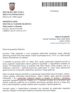 Ovaj dopis dokazuje da sam godinama govorio istinu i da je Marjan izložen brutalnoj nezakonitoj gradnji. Tko je za to odgovoran? Tko je omogućio da se dođe do brojke od 67 dokazanih kriminalnih radnji?