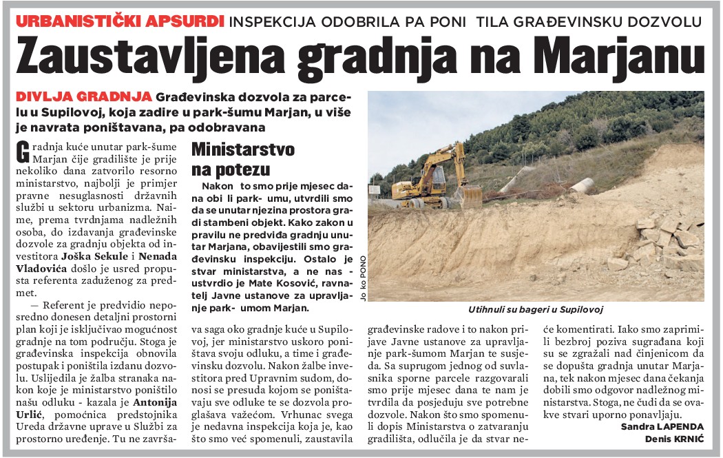 Slučaj MEGST 02.03.2007. Slobodna Dalmacija 04.09.2024. Šef park-šume: Tvrdnje splitske tvrtke da im je objekt na Marjanu legalan su netočne 04.09.2024. Tvrtka iz Splita: Naš objekt nije u park-šumi i ima građevinsku dozvolu